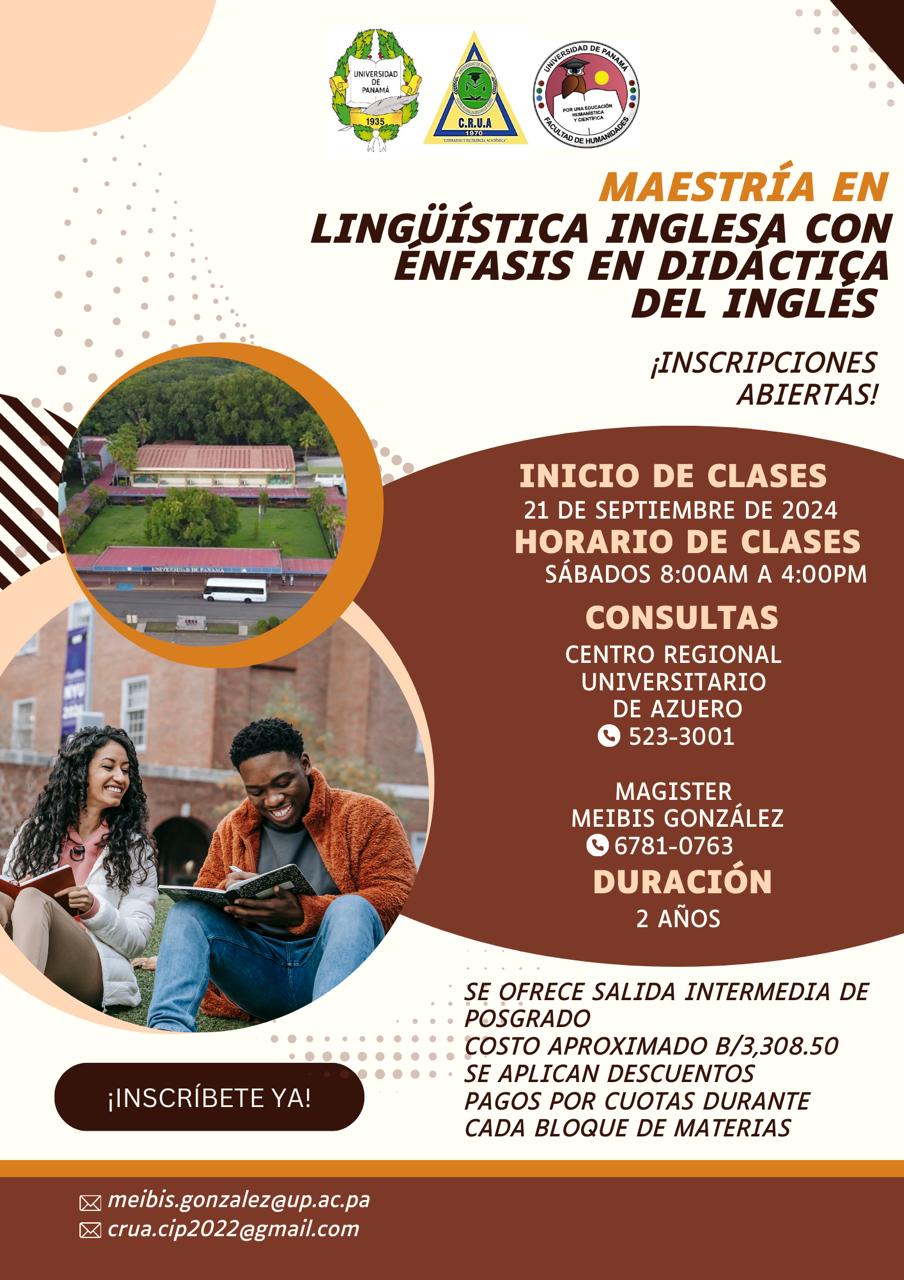 Cargo actual: Coordinadora encargada, con más de 24 años en la enseñanza del inglés a nivel universitario y secundario en el Centro Regional Universitario de Azuero (CRUA), Universidad de Panamá.